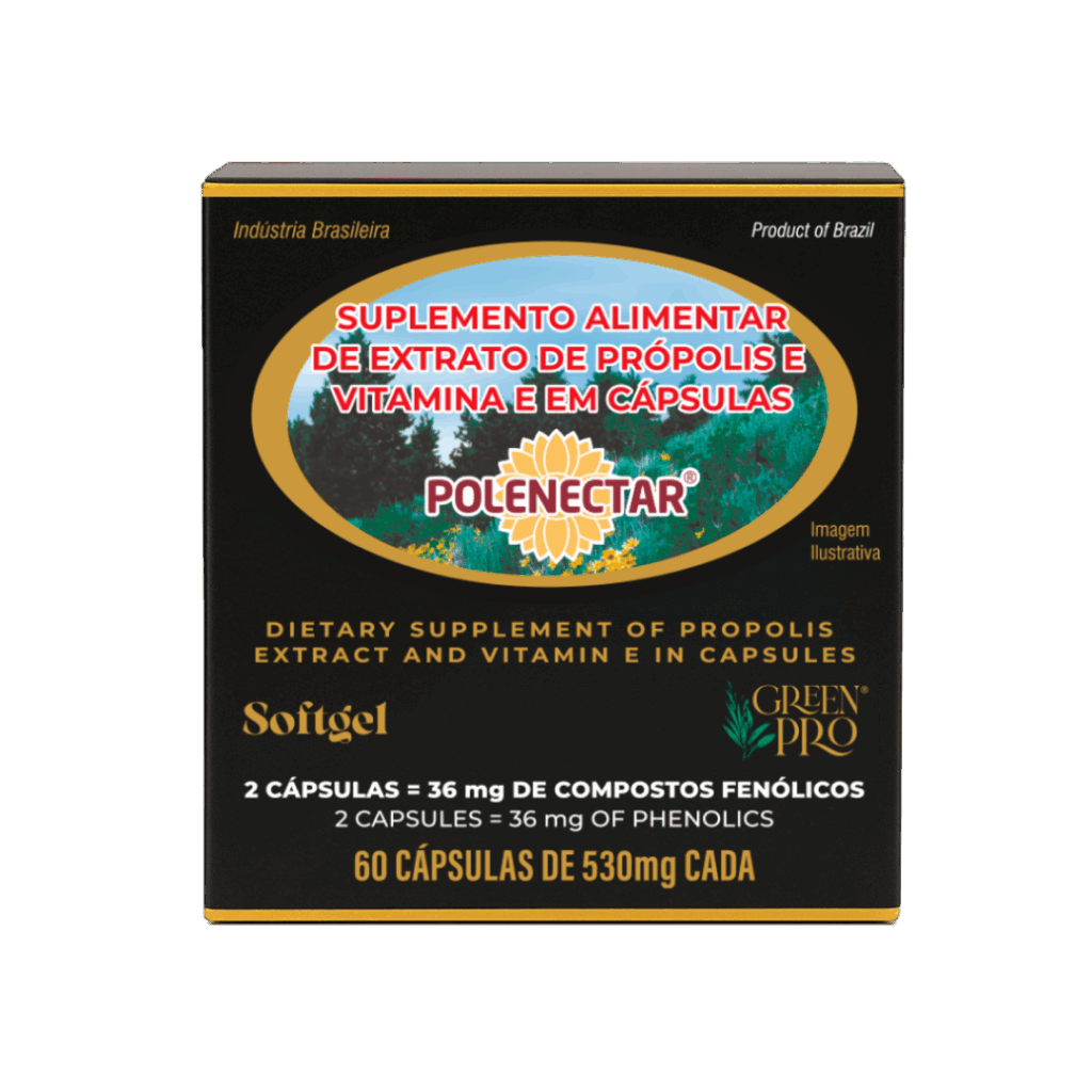 Produzido pelas abelhas a partir do alecrim-do-campo (Baccharis dracunculifolia) – planta exclusiva do cerrado brasileiro – o Extrato de Própolis Verde Polenectar® é rico em Artepillin C, flavonoides e ácidos fenólicos.